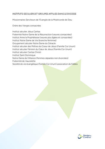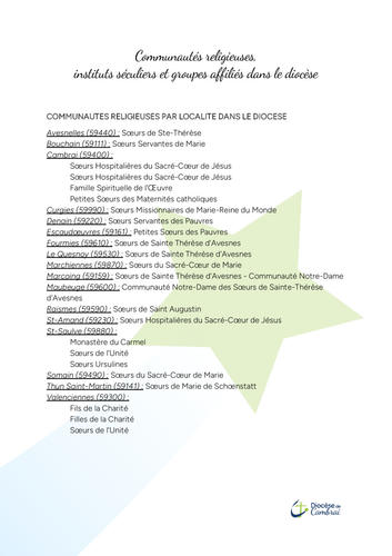 Retrouvez-ci dessous la liste des communautés religieuses et intituts de vie consacrée dans notre diocèse.